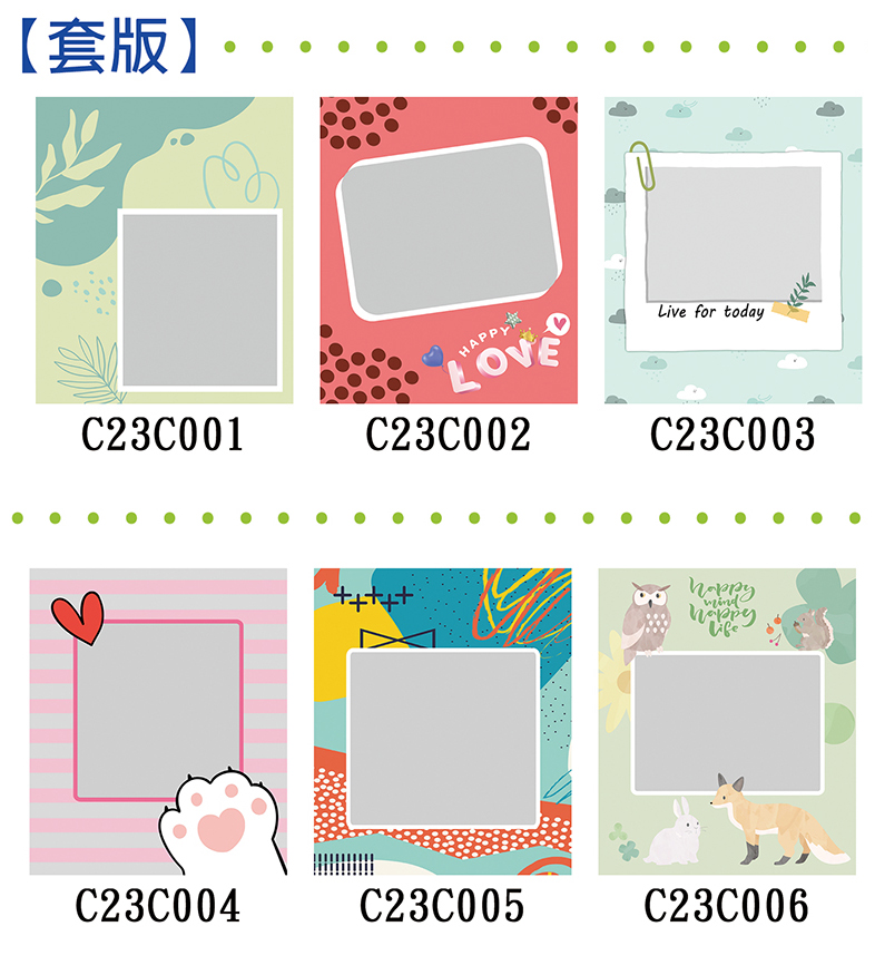 ◆請於備註欄註明您喜愛的套版編號,無備註者視為不套版製作。