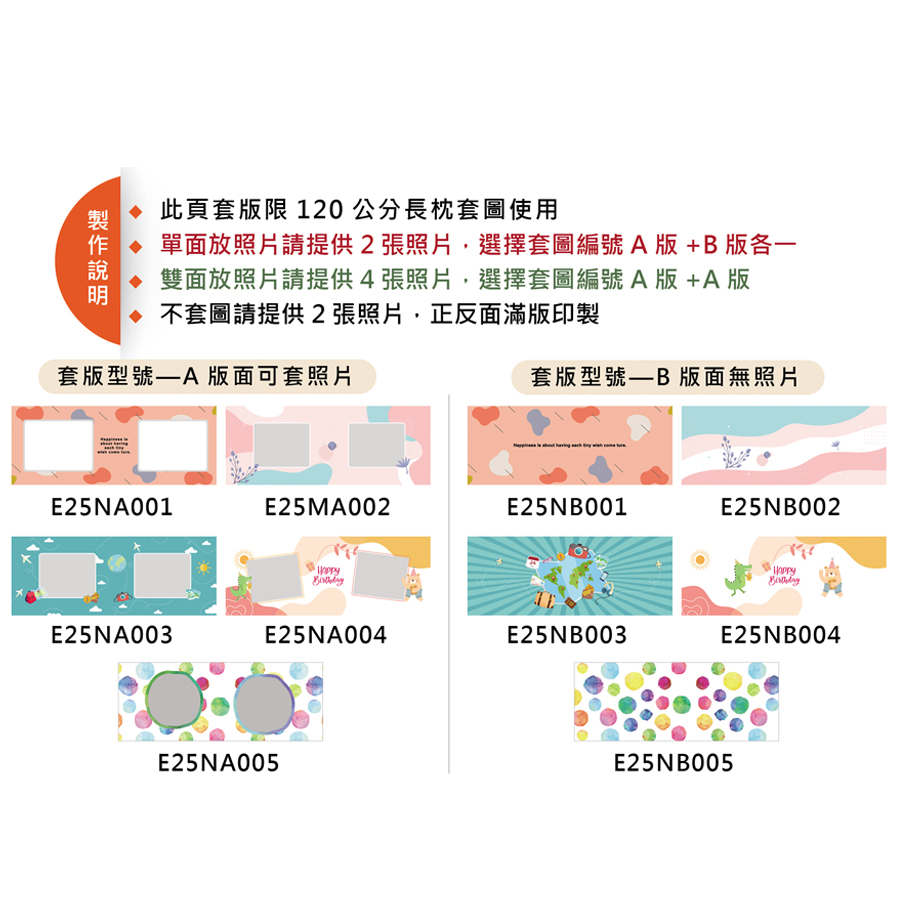 ◆ 請於備註欄註明您喜愛的抱枕款式編號 ( A版+B版 ),無備註者採隨機製作出貨